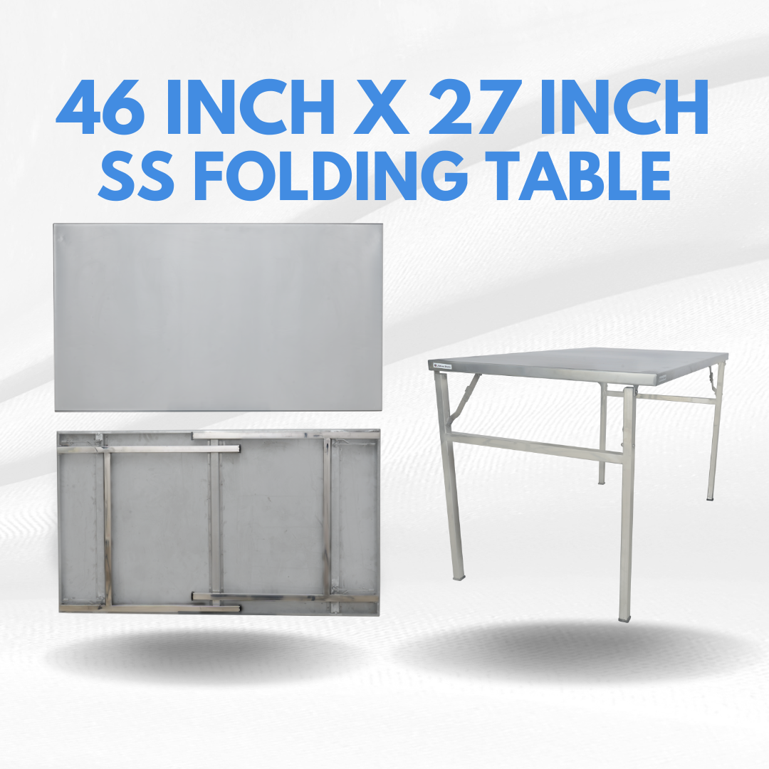 "Shop for a high-quality 46-inch x 27-inch x 28-inch steel folding table made from durable SS202 grade stainless steel, perfect for versatile use in home, office, and outdoor settings."