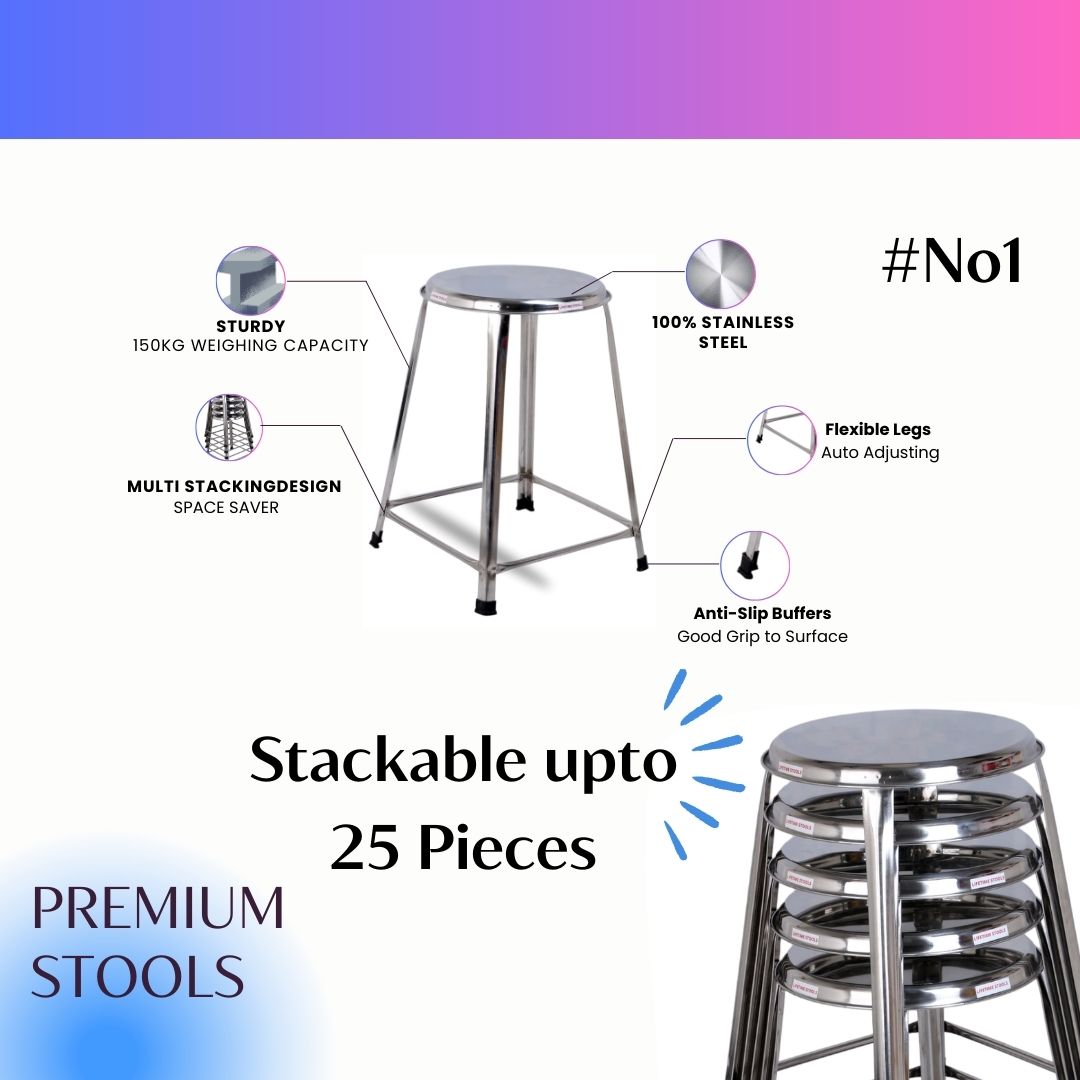 18 Inch Stainless Steel Stool | Heavy Duty SS Stool | Stackable Industrial Stool (1.5 Foot Height)