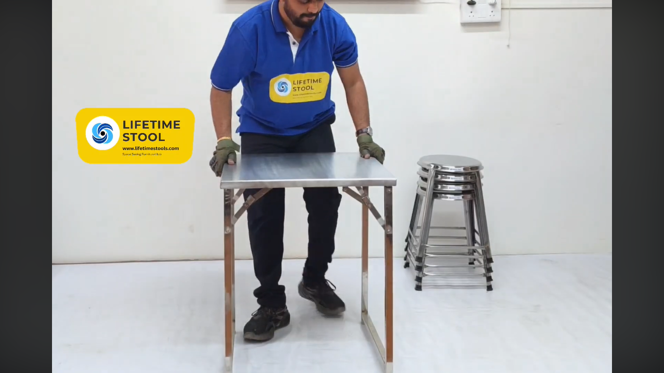 Manufactured by Lifetime Stools, this folding table is made from high-quality stainless steel, offering long life, rust resistance, and heavy load capacity. Easy to fold, store, and carry – perfect for daily and commercial use.