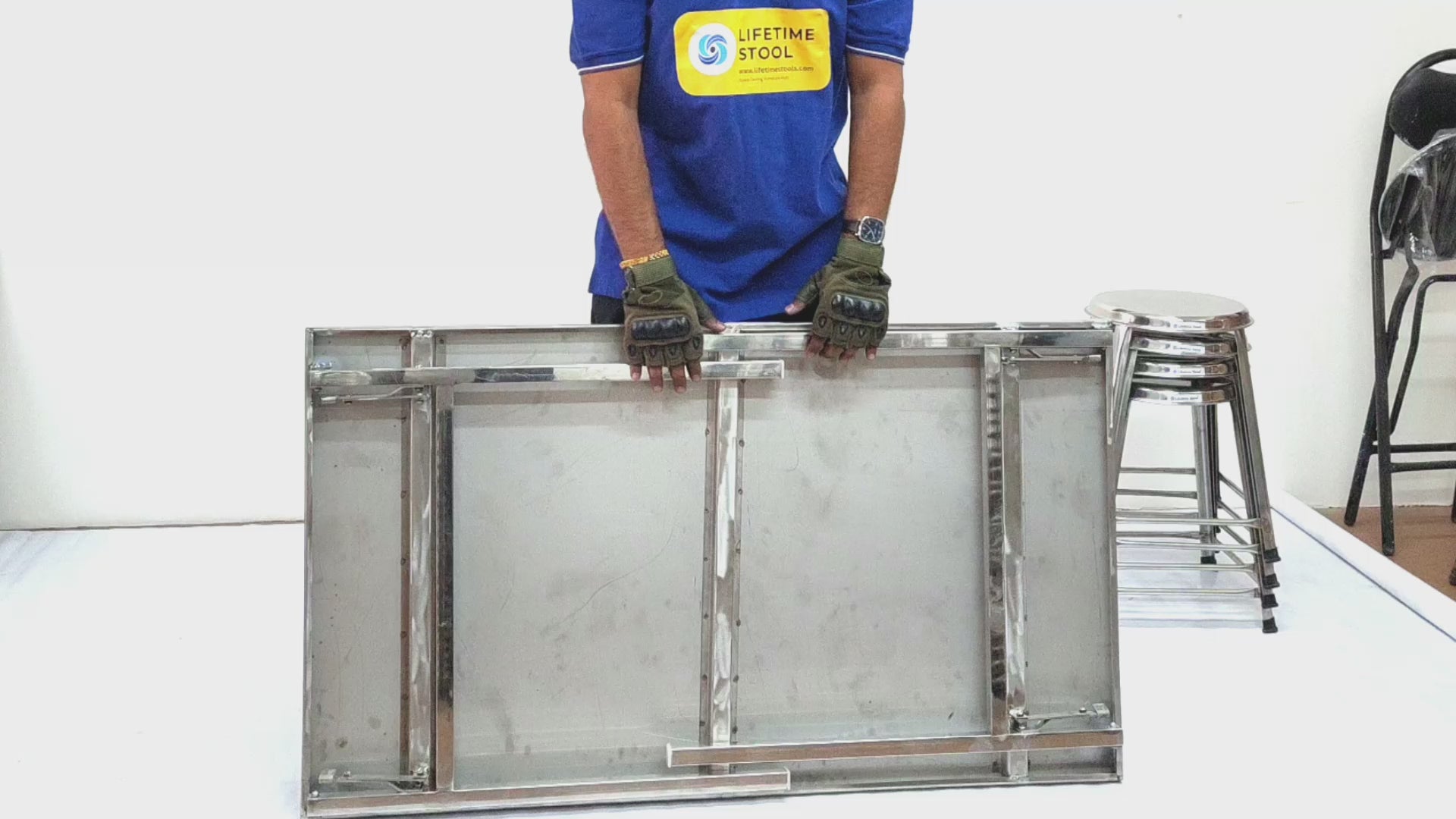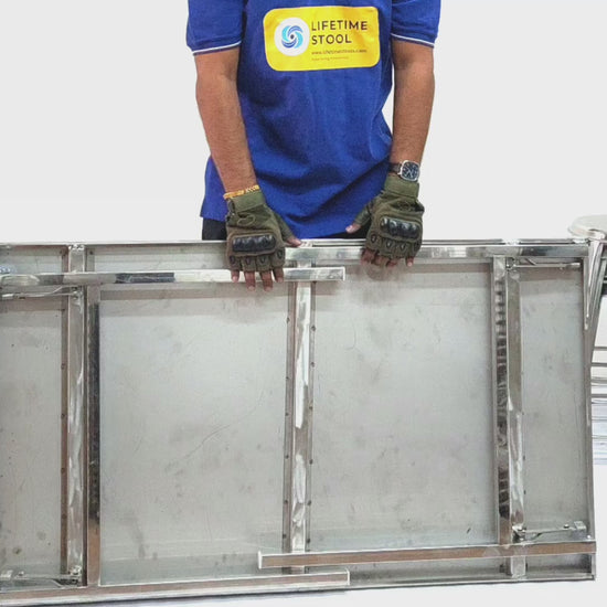 Manufactured by Lifetime Stools, this folding table is made from high-quality stainless steel, offering long life, rust resistance, and heavy load capacity. Easy to fold, store, and carry – perfect for daily and commercial use.